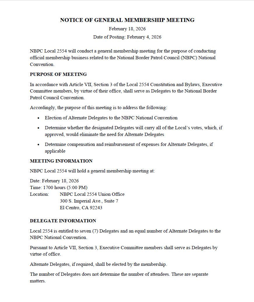 NOTICE OF GENERAL MEMBERSHIP MEETING